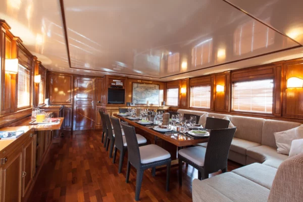Complimenting this, her beautiful mahogany paneled interior gives a classical charm and relaxing atmosphere. Large deck areas allow ample space for sunbathing with diving, water skiing and jet skiing available for the most adventurous.